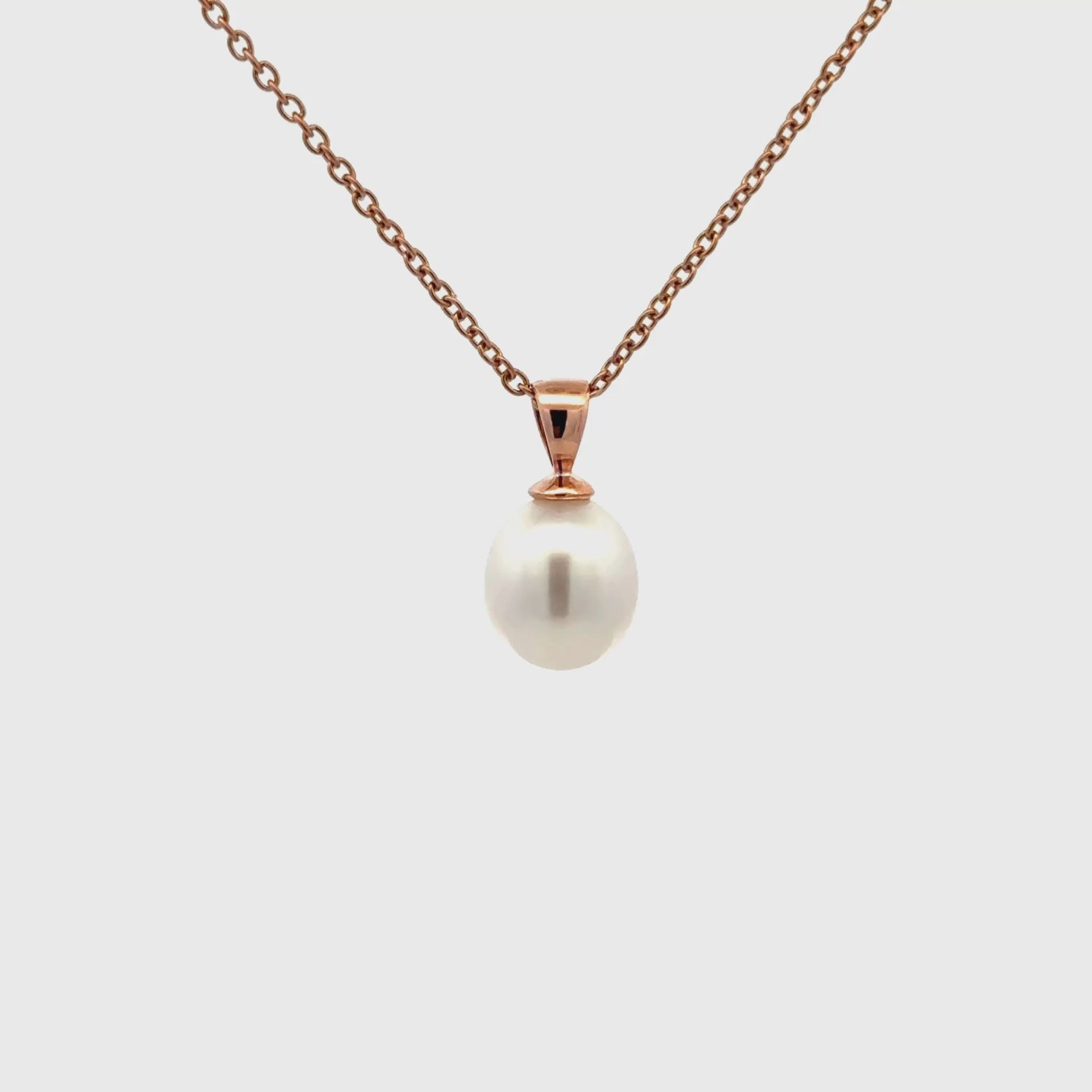 Elevate your style with this exquisite pearl pendant, showcasing timeless elegance. This Willie Creek Pearls pendant is composed of 9K rose gold, with a single 10-11 mm drop shaped, white pearl with excellent lustre.
